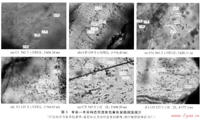 與烴類流體包裹體同幕的鹽水流體包裹體均一溫度不僅可以用來作為古溫度的近似值和熱事件的標(biāo)志,而且還可以用作油氣成藏幕次劃分的有效依據(jù)。
