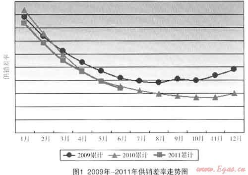 表1 2009年~2011年1月~6月供氣銷(xiāo)售對(duì)比表