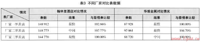 (5) 開(kāi)展不同廠家表具在線(xiàn)的對(duì)比性試驗(yàn),對(duì)比分析表具計(jì)量誤差。通過(guò)對(duì)同一型號(hào)不同廠家的流量計(jì)進(jìn)行對(duì)比試驗(yàn),對(duì)計(jì)量誤差大的流量計(jì)廠家實(shí)行淘汰,以減少因計(jì)量所產(chǎn)生的供銷(xiāo)差。現(xiàn)合肥燃?xì)庖言诖笮凸S及酒店設(shè)立了兩個(gè)數(shù)據(jù)對(duì)比場(chǎng)所,把在用的幾個(gè)廠家表具放在同一現(xiàn)場(chǎng)進(jìn)行數(shù)據(jù)比對(duì),以從中選出最為適合我公司使用的廠家表具,淘汰表具質(zhì)量不合格的廠家。對(duì)比數(shù)據(jù)參見(jiàn)表3。