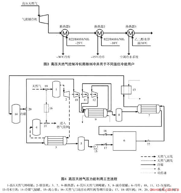 摘要:高壓管網(wǎng)輸送的天然氣在調(diào)壓過(guò)程中釋放巨大的壓力能,通過(guò)降壓設(shè)備將這部分能量有效回收,用于發(fā)電、天然氣脫水、輕烴分離、LNG及NGH調(diào)峰、橡膠粉碎和冷庫(kù)等領(lǐng)域。具體描述了聯(lián)合循環(huán)發(fā)電和回收壓力能所制得的冷能在冷庫(kù)中的運(yùn)用。針對(duì)天然氣供氣不平衡、調(diào)壓站分布不集中以及能量高效利用的問(wèn)題,提出了改進(jìn)方案,充分利用膨脹機(jī)輸出的功驅(qū)動(dòng)壓縮機(jī)等設(shè)備的運(yùn)轉(zhuǎn),將膨脹制得的冷量運(yùn)用在相應(yīng)的冷產(chǎn)業(yè)中,保證了壓力能的高效利用。
