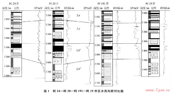 該區(qū)儲層分布穩(wěn)定,厚度大,物性致密,常規(guī)氣藏形成條件欠佳,但能形成致密砂巖氣藏。下侏羅統(tǒng)為含煤的碎屑巖沉積,泥巖以深灰色為主,發(fā)育煤層,為潮濕環(huán)境下的沼澤-湖泛沉積。“先成型”深盆氣藏要求源藏伴生、源儲一體,距離越近越好,直接接觸或互層為最佳,天然氣為“有根”狀態(tài)[2]。水西溝群縱向上砂泥巖與煤層互層呈“三明治”結(jié)構(gòu),地層厚度介于285~892m,砂地比介于30%~60%,單層厚度一般為5~30m,砂巖類型有粉砂巖、細砂巖、含礫砂巖、中砂巖和粗砂巖,屬辮狀河三角洲沉積,儲層平面分布穩(wěn)定(圖1)。