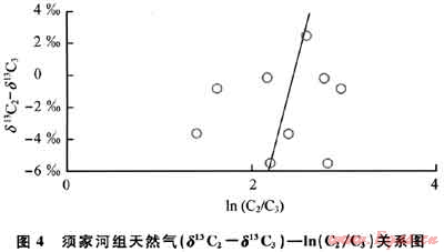 3.1.2 (δ13C2—δ13C3)—ln(C2/C3)關系圖