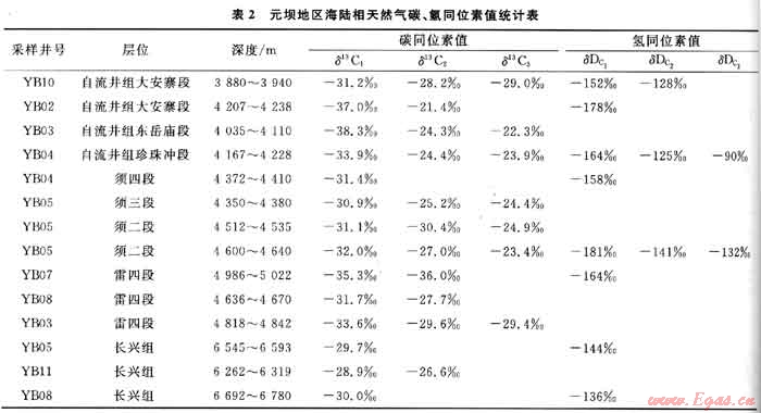 根據現有的地化分析成果,元壩地區(qū)海相長興組、飛仙關組與雷口坡組及以上地層之間天然氣δD的劃分界限應該在-150‰附近(圖2、表2)。