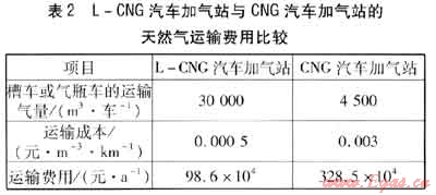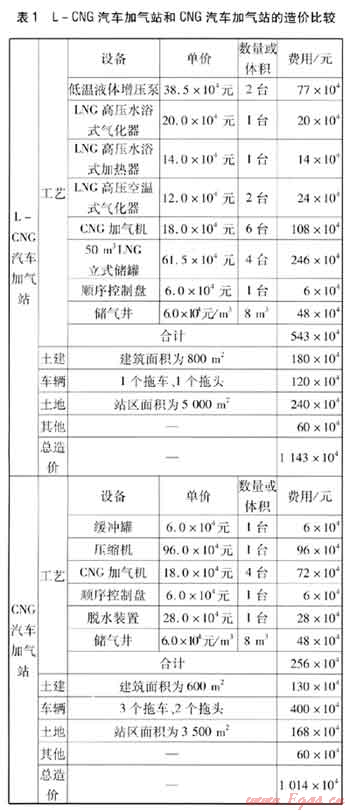 L-CNG汽車加氣站和CNG汽車加氣站的造價(jià)比較見(jiàn)表1。