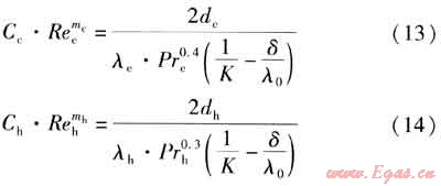 Rec、Reh——冷、熱流體的雷諾數(shù)