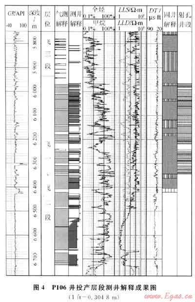根據(jù)數(shù)值模擬評價結(jié)果,選取避射氣層下部6350.9~6529.0m井段,避射厚度斜深178.1m。同時考慮到飛三段解釋的12.1m/5層氣層分散在50m跨度范圍內(nèi),不利于投產(chǎn)作業(yè)施工,全部避射。最終優(yōu)選飛一、二段上部5966.3~6344.8m井段投產(chǎn),井段跨度378.5m,累計射孔厚度226.6m。P106井氣層的實際打開程度為50.6%。
