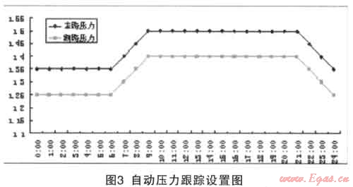該功能可以預(yù)輸入最多4條壓力曲線,在不同的季節(jié)或者時間段選擇不同的壓力自動跟蹤曲線。
