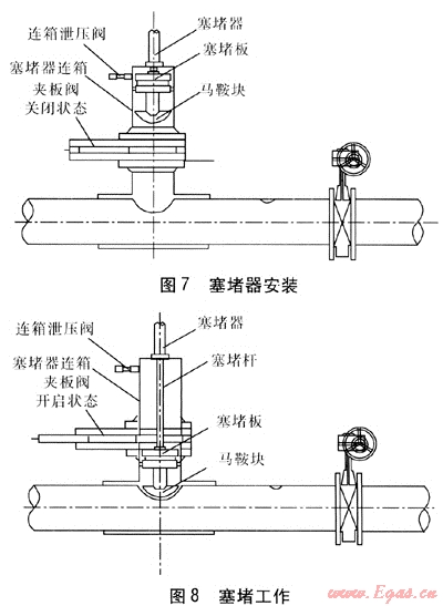 ③ 塞堵過程中應(yīng)檢查塞堵的方向,確保馬鞍塊的方向與管道方向一致。塞堵安裝完成后,塞堵桿應(yīng)全部收回[2]。
