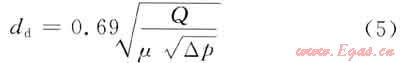 得到噴嘴當量直徑為: