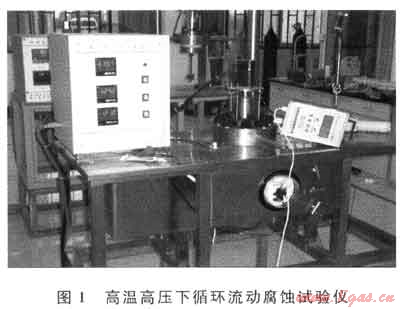 實(shí)驗(yàn)儀器為西南石油大學(xué)“油氣藏地質(zhì)及開發(fā)工程”國家重點(diǎn)實(shí)驗(yàn)室自主設(shè)計(jì)建造的高溫高壓下循環(huán)流動腐蝕試驗(yàn)儀(圖1),上述評價(jià)是在該儀器上完成的。儀器最大氣密封工作壓力70MPa、最高工作溫度180℃、容積8L、整體C276合金鍛造、藍(lán)寶石視窗觀察流動狀況。兩個(gè)功能流道可模擬研究流速、氣流持水率、元素硫是否附著于試片等流動因素的腐蝕,本實(shí)驗(yàn)通過高溫高壓釜視窗觀察不同流速條件下,模擬在含有地層積水和攜水條件下的腐蝕情況。