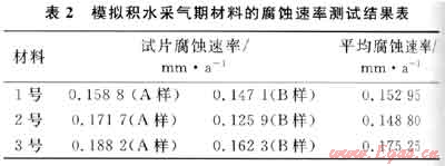在溫度為120℃,壓力為60MPa,含地層積水條件下的各個(gè)試件的腐蝕情況,其統(tǒng)計(jì)結(jié)果見表2。