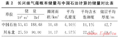 本次計(jì)算的概率儲(chǔ)量分布的P50和中國(guó)石油天然氣股份有限公司(以下簡(jiǎn)稱(chēng)中國(guó)石油)的計(jì)算結(jié)果差別較大,其主要的原因是本次所采用的孔隙度截止值與中國(guó)石油所采用的有較大差別,另外本次計(jì)算使用的圈閉面積也小于中國(guó)石油采用的圈閉面積。對(duì)于P50,采用了3%的孔隙度下限值,而中國(guó)石油原來(lái)采用的是2%。使用3%的截止值時(shí),各井平均孔隙度會(huì)略微偏高,但平均產(chǎn)層厚度卻顯著低于采用2%孔隙度截止值時(shí)的厚度(表2)。