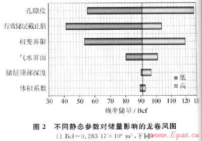 天然氣體積系數(shù)對(duì)儲(chǔ)量大小的影響雖然小,但仍將其考慮于模型中。體積系數(shù)的變化范圍由雪佛龍能源技術(shù)公司(ETC)提供。