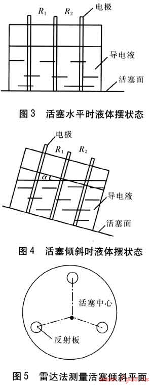 液體擺法測量活塞傾斜,檢測設(shè)備比較精密,測量的精度較高,但是由于設(shè)備安裝在活塞上,隨活塞一同升降,受到震動影響,誤差會比較大,維護時操作人員需到活塞上。一套設(shè)備造價大約(5~8)×104元。