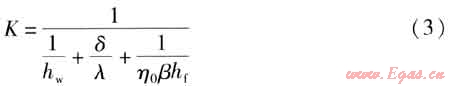 ③ 計(jì)算煙氣與水之間的傳熱系數(shù)K,計(jì)算公式為: