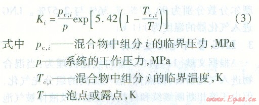 目前對烴類通常采用以下的經(jīng)驗關聯(lián)式來估計Κi的近似值: