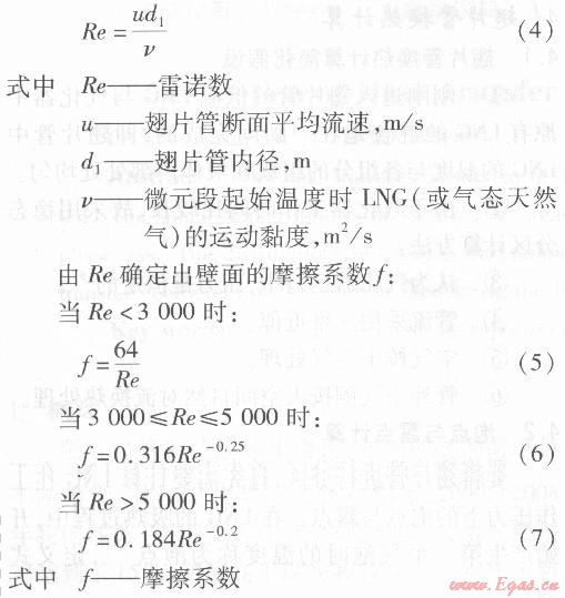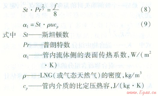 管內(nèi)LNG或氣態(tài)天然氣的對流換熱可以按照內(nèi)部強制對流換熱的實驗準則關聯(lián)式進行計算。