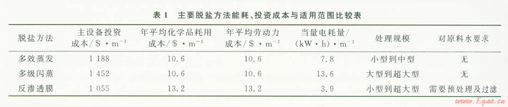 2)從設(shè)備投資來看,膜分離方法的投資成本最低。但清洗和更換反滲透膜需要持續(xù)的投資,因此,維護(hù)費用在實際運(yùn)行中也占有一定的比例。多效蒸發(fā)方法因為容易結(jié)垢,維持費用比多級閃蒸方法高。