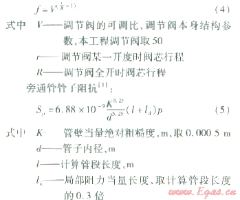根據(jù)文獻(xiàn)[1],旁通管閥門調(diào)節(jié)過(guò)程中閥門的開度對(duì)循環(huán)水泵的揚(yáng)程影響很小,可以認(rèn)為在閥門調(diào)節(jié)過(guò)程中旁通管兩端壓差不變,等于循環(huán)泵揚(yáng)程。本次旁通管規(guī)格選用DN 40 mm。