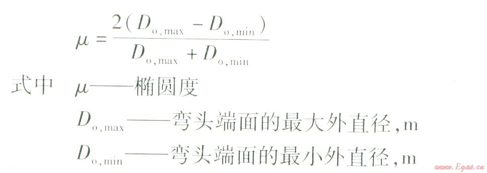 彎頭具有一定的橢圓度可以降低彎頭應(yīng)力,橢圓度控制在8%是合理的,若嚴(yán)格限制在6%以下,既增大成本又提高了彎頭的應(yīng)力。