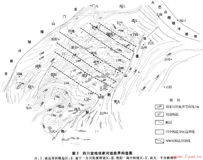 勘探已證實四川盆地須家河組天然氣資源豐富,以致密砂巖氣藏為主,含氣面積大、儲量規(guī)模大,同時存在含水飽和度偏高、開發(fā)動用難度大等難題。加強氣水分布主控因素和天然氣富集“甜點”區(qū)塊預測是當前勘探開發(fā)面臨的重要課題。筆者認為加強須家河組構造研究是解決上述難題的重要途徑。