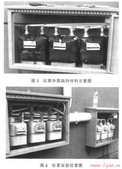 為了盡可能降低儀表本身的誤差影響,把原來(lái)用戶使用的舊表更換為性能優(yōu)異的進(jìn)口BK表,安裝前對(duì)所有儀表都重新檢定和校準(zhǔn)。隔熱材料使用10mm厚的橡塑海綿,除表嘴和計(jì)數(shù)器面板外,其余部位全部包扎緊裹,見(jiàn)圖3。