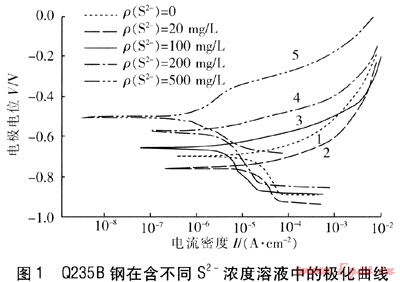 圖2為不同S2-質(zhì)量濃度對(duì)Q235B鋼腐蝕電位的影響。