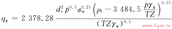 式中:qg為氣流攜帶液滴所需的最小流量,104m3/d;dt為油管直徑,m;p為氣體流動(dòng)壓力,MPa;T為氣體流動(dòng)溫度,K;Z為天然氣偏差系數(shù),無因次;γg為氣體相對(duì)密度,ρl為液體密度,kg/m3;σw為氣液表面張力,mN/m。