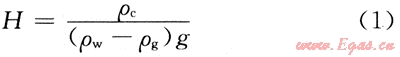 在毛細管壓力曲線上,一定壓力對應的非潤濕相飽和度相當于氣藏中一定高度的含氣飽和度,因此,把毛細管壓力曲線的縱坐標用自由水面以上的液柱高度來表示,就可以用該曲線來確定出氣藏中任意高度上的含氣飽和度,從而得出整個氣藏的氣水縱向分布特征。自由水面以上液柱高度的計算公式為: