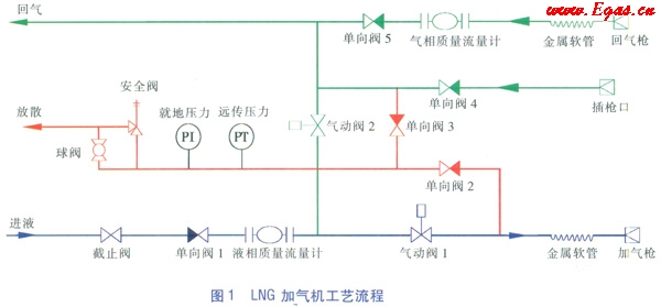 在現(xiàn)有使用的LNG加氣機中,其工藝流程見圖1。