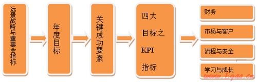 此外,國內(nèi)著名的港華燃?xì)饧瘓F(tuán)將平衡計分卡的四個構(gòu)面改稱為“四大目標(biāo)”,把推行平衡計分卡績效管理改稱為推行“四大目標(biāo)”管理,使口徑變得直觀好記,更利于集團(tuán)向各所屬公司推廣平衡計分卡績效管理。
