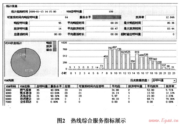 工具2—服務(wù)指標管理工具。圖2所示為服務(wù)指標管理工具的主要功能之一——熱線綜合服務(wù)指標監(jiān)控界面。