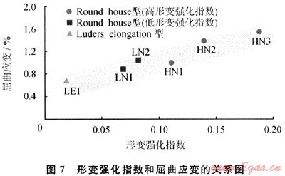 鋼管在塑性變形過程中產(chǎn)生的形變強化,可以阻止進一步變形的發(fā)生,防止變形的局部集中。這一過程可以通過形變強化指數(shù)表征。提高管材的形變強化指數(shù)是提高輸送管變形能力的有效途徑(圖7)[13~14]。對于具有較高變形能力的管線鋼,其形變強化指數(shù)一般大于0.1。
