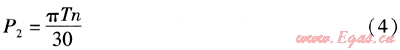 忽略能量損失,變頻器輸入功率等于電動機軸功率,既P2=P3。根據(jù)式(6)、(7)得到: