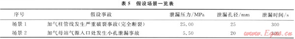 假設場景1:CNG壓縮機3臺同時運行,此時排:氣量約為2.60kg/s,加氣柱被槽車撞到,發(fā)生嚴重破裂事故,管道完全斷裂。