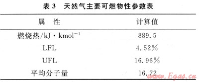 天然氣主要可燃物性參數見表3。