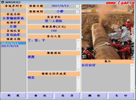 圖4 管道維修信息窗口