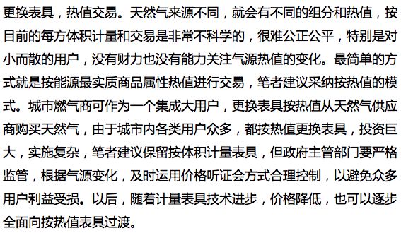 綜上所述,天然氣價格改革并按熱值交易是天然氣產(chǎn)業(yè)鏈健康可持續(xù)發(fā)展牛鼻子,管住中間獲得合理基本利潤后,適時順價,就能充分發(fā)揮市場的功能,引領(lǐng)天然氣大發(fā)展,助力中國大規(guī)模煤改氣,盡早打贏藍天保衛(wèi)戰(zhàn)。