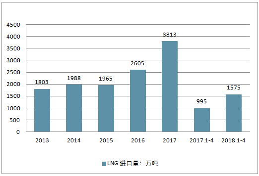 2013-2018年我國(guó) LNG 進(jìn)口量(單位:萬(wàn)噸)