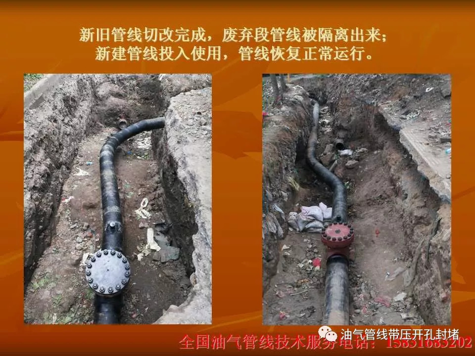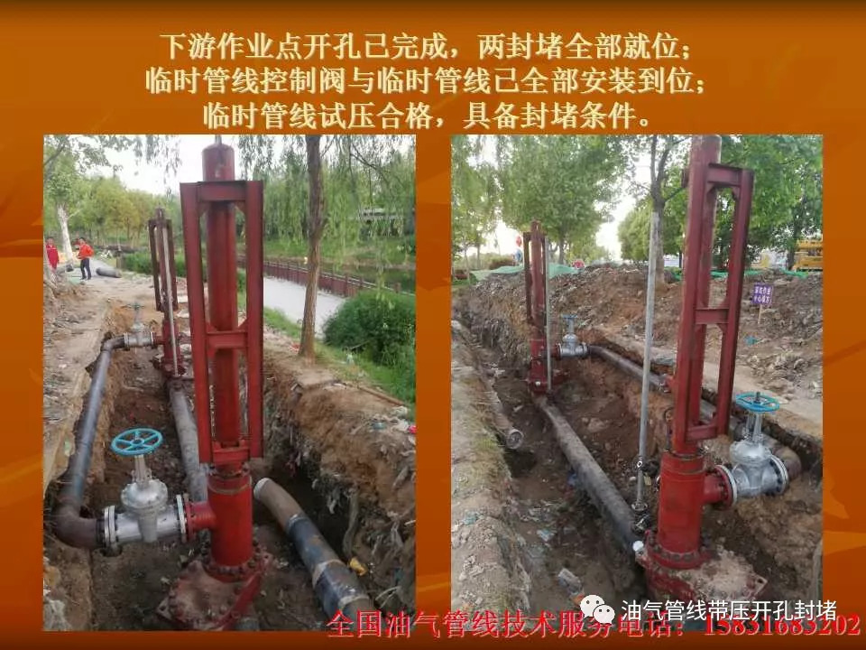 本次改造施工采用四封四堵不停輸封堵工藝,該種工藝優(yōu)點在于:所有工序均在不影響管線內(nèi)介質(zhì)正常輸送的狀態(tài)下進行且減少了長距離鋪設旁通管線的工作量,縮短了施工周期,使工作進行的井然有序,安全可靠。