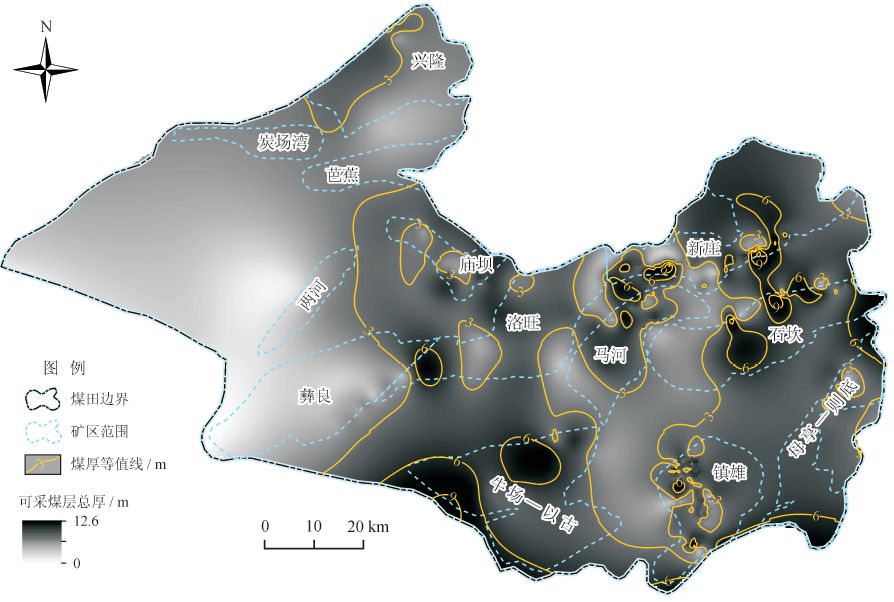 圖4 鎮(zhèn)威煤田可采煤層總厚度分布圖