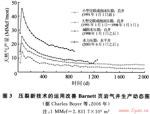 3.2 壓裂增產(chǎn)技術(shù)的進(jìn)步顯著提高了頁巖氣的產(chǎn)量
