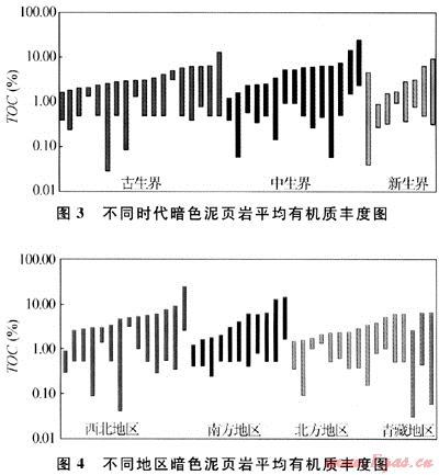 古生界、中生界分布范圍較廣并大致以天山為中心形成南、北“蹺蹺板”式沉積特點(diǎn),即早古生代時(shí)以天山以南的塔里木地塊為沉降沉積中心,形成較大面積分布的海相頁巖。晚古生代時(shí)則以天山以北的準(zhǔn)噶爾地塊為中心形成頁巖沉積。晚二疊紀(jì)末中生代以來,全區(qū)進(jìn)入陸相沉積環(huán)境,“蹺蹺板”運(yùn)動基本結(jié)束,總體上表現(xiàn)出總有機(jī)碳含量向上逐漸增加的趨勢。