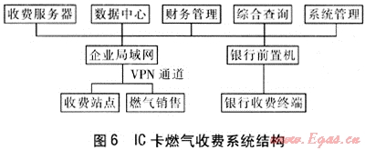 大慶燃氣公司IC卡燃氣收費系統(tǒng)是依托計算機網(wǎng)絡(luò)建立的燃氣銷售信息管理系統(tǒng),它融合了當(dāng)今成熟的數(shù)據(jù)庫技術(shù)及網(wǎng)絡(luò)技術(shù),實現(xiàn)了燃氣銷售的實時開戶、售氣、售氣信息管理等功能。IC卡燃氣收費系統(tǒng)結(jié)構(gòu)見圖6,IC卡燃氣收費系統(tǒng)包括收費服務(wù)器、數(shù)據(jù)中心、財務(wù)管理、綜合查詢、系統(tǒng)管理,由收費服務(wù)器和銀行前置機實現(xiàn)上述功能。