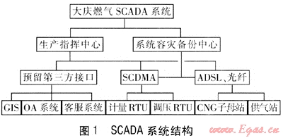 各調(diào)壓箱、計量箱、商業(yè)用戶計量間、CNG站地理位置分散,若對各站(箱)的監(jiān)控采取人工記錄、逐級匯報的方法,則存在著上報數(shù)據(jù)不及時,對設(shè)備故障發(fā)現(xiàn)不及時等安全隱患。SCADA系統(tǒng)實現(xiàn)了對現(xiàn)場生產(chǎn)數(shù)據(jù)的實時采集與監(jiān)控和對生產(chǎn)過程的調(diào)度指揮,保證了安全平穩(wěn)供氣。