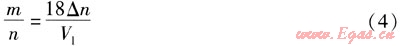 由式(1)~(3)得到消耗的甲烷的物質(zhì)的量△n,再由甲烷水合物的理想分子式mCH4·nH20得到氣體與水的消耗量比(水的單位體積為18mL/mol):
