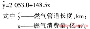 我國1986年—1998年城市燃氣管道長度與銷售量回歸方程[1]為: