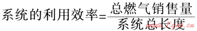 大量的國內(nèi)外資料表明,城市管網(wǎng)管線長度與銷售量有明顯的線性關(guān)系,國際上常以總銷量(106m3)與系統(tǒng)總長度(km)的比值表示——燃氣輸配系統(tǒng)的利用效率[1]: