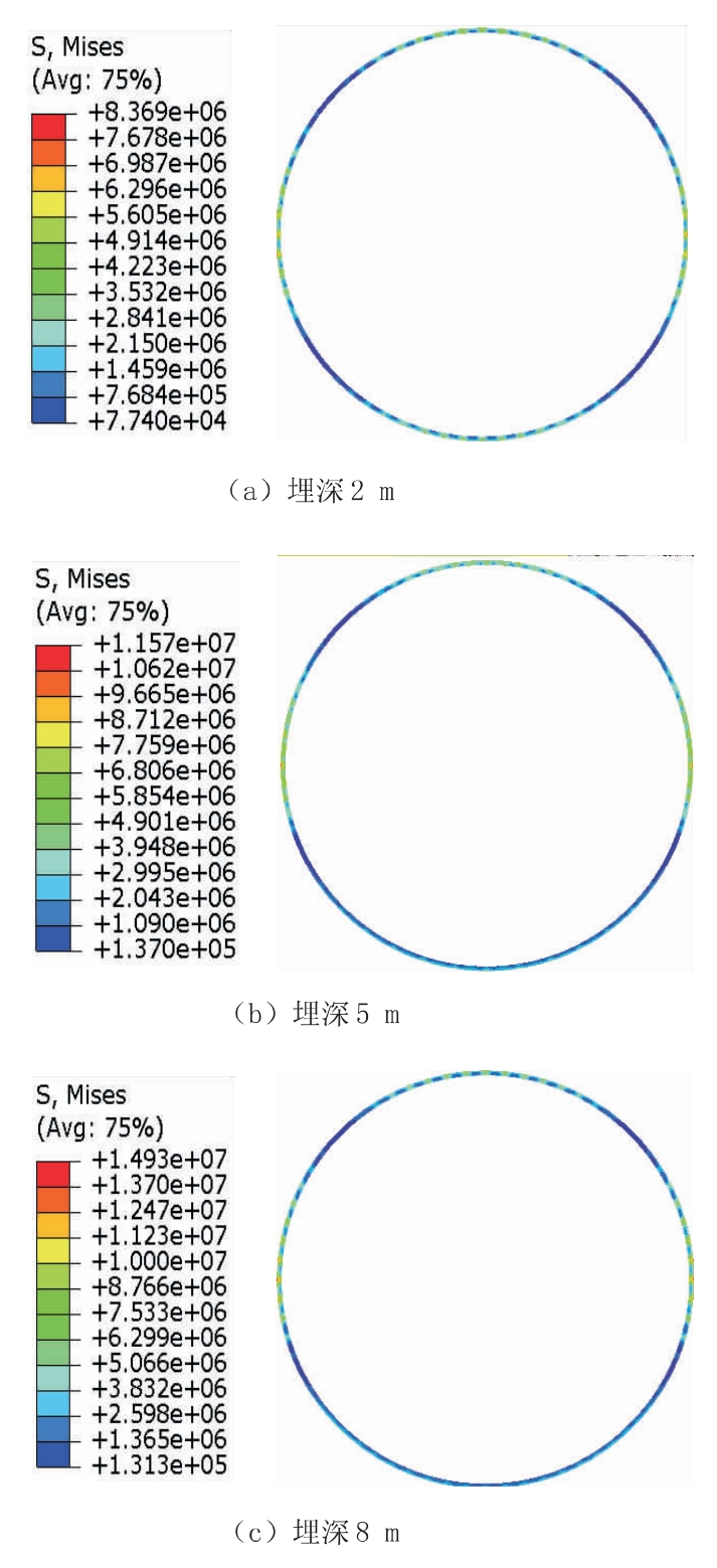 圖4 不同埋深下管體的應(yīng)力場分布云圖