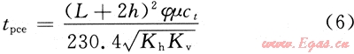 對于式(5),t0可理解為水平井開井生產至垂直平面徑向流結束時間,記為tpce;r0為擬圓形坑道外緣半徑,記為rpce。關于tpce的確定,利用Giger等人提出的等效滲透率的方法[4],并結合式(1)以及tpce的表達式可以容易得出: